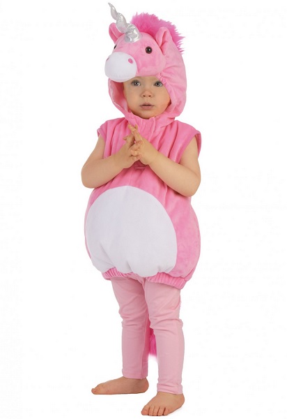Auch bei Einhorn Kostümen für Babies dominiert der Einteiler in Form eines kuscheligen Stramplers. Das ist natürlich auch am bequemsten und wärmsten für ein Baby. Für Kleinkinder gibt es auch schon bunte Tüllröcke und das Horn ist meist in einer Mütze verabreitet, damit sie besser auf dem Kopf sitzt und nicht so schnell verloren gehen kann.
