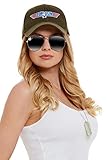 Oder du wählst das Top Gun Kostüm für Damen, das aus einem hautengen olivfarbenen Kleid besteht. Dieses kurzärmelige Minikleid wird vorne mit einem Reißverschluss geschlossen und hat viele aufgenähte Taschenimitationen. Auch einige Applikationen in Form von authentischen Aufnähern wie amerikanischer Flagge und Stern runden das Navykleidchen ab. Dazu ziehst du sexy schwarze Netzstrumpfhosen an und High Heels.