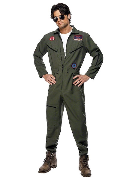 Du willst so cool aussehen wie Tom Cruise als Lieutenant Maverick in Top Gun? Nichts leichter als das! Dafür ziehst du einen olivgrünen Overall an mit langen Beinen und langen Ärmeln. In der Mitte wird er von einem olivgrünen Stoffgürtel geschlossen. Der einteilige Anzug hat viele tolle Aufnäher Marke Top Gun, u.a. einen mit dem Originallogo.